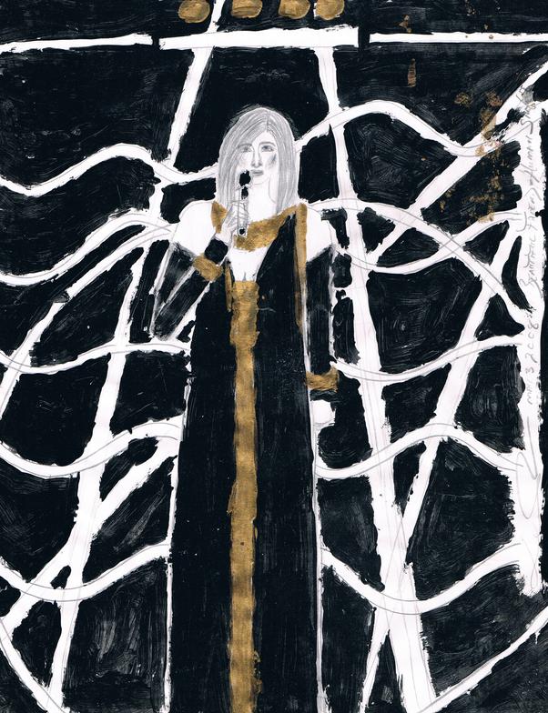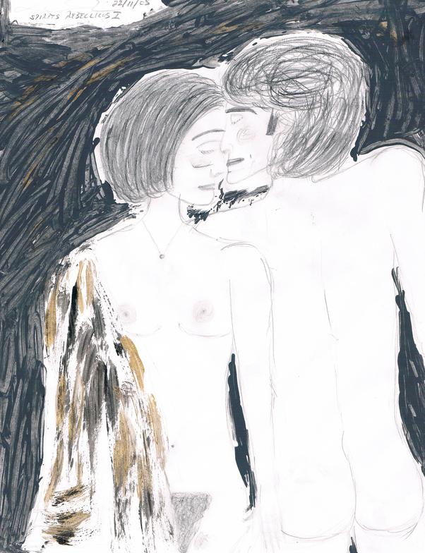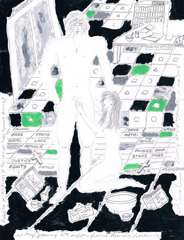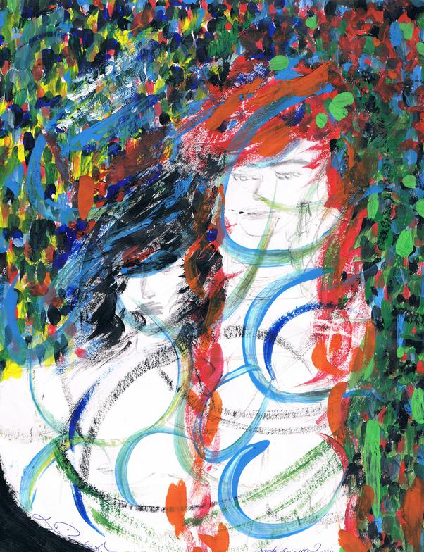 This compelling work continues a romance of many kinds of passion ... she protects the Creator while exalting him as he has and exalts her. There is passionate love that continues despite apparent treachery, and violence and insensitivity. He defends as she defends, for they know of the violent forces at work that bind them. This work, in subtle manner, depicts a particular madness juxtaposed as against the obvious profound love based on very high spirits and communions with time, forms, ethics and good struggles to create a just society, from the modesty of home - our home. Their isolation reflects privacy and something else - known at history, and necessary within the confines of the world and New America. The necessary 'proprietary' is meditated upon - once again, alongside great love that only the Master knows to be valid. Winston Tannis has written a song to be sung with Barbra Streisand that resonates with the true love depicted here, yet this figure is obviously not great diva Streisand in form - it is someone else, but whom if not her. Is it Streep, Debra Messing ... or someone else or a combination of personalities.