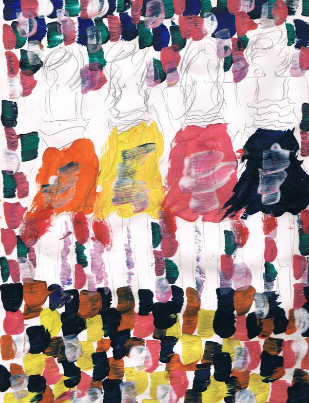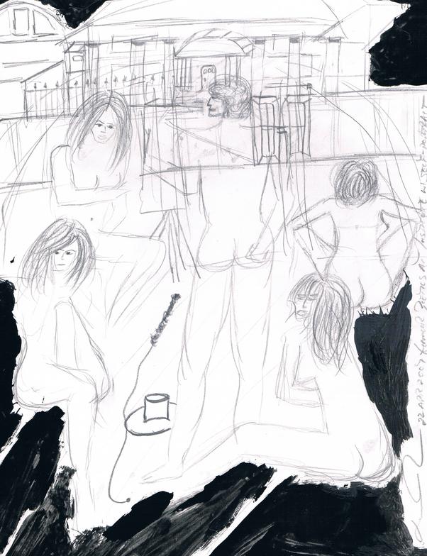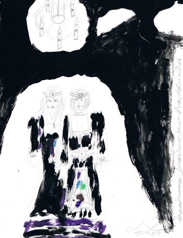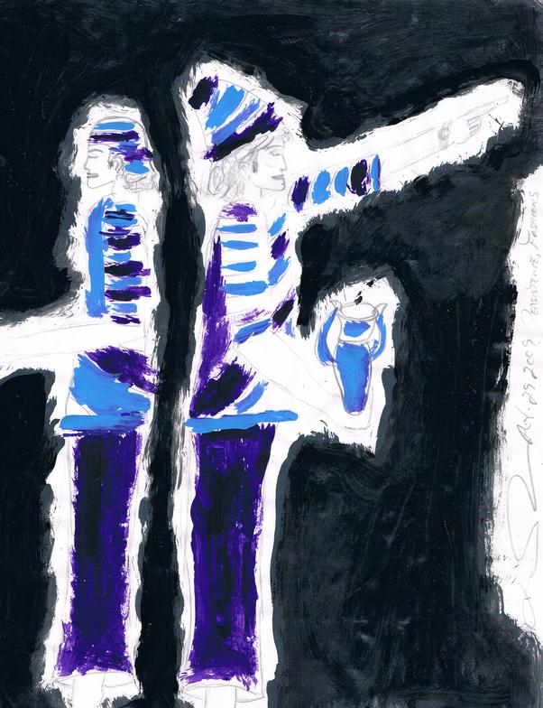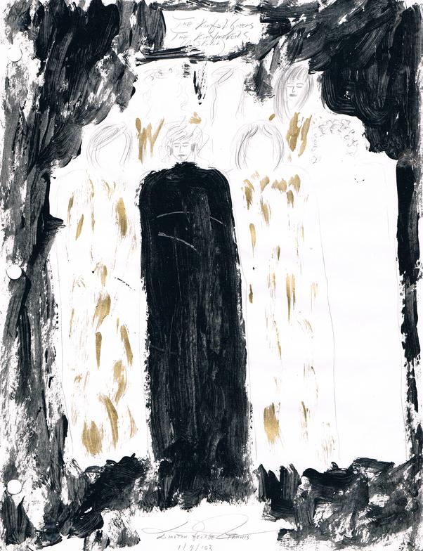 This is another haunting work by Tannis - the faces yet facelessness. What is the nature of this group. What are they thinking. How are they bound??? ... It appears that the artist himself is depicted at the front of the choir, dressed in a black robe. Could this work have anything to do with the soon to be released single titled, You Are The Fashion, and as prepared for the soundtrac to the major motion picture to possibly co-star Jennifer Aniston. Speculation will continue for some time. At minimum, there is a sense of human connectedness described or emanating from this work - a communion of kinds that reveals Tannis' sense of humanity, society. Tannis is known to share his residences with students and persons from around the globe, and from each continent - is there any connection in this work to that phenomenon of his life as artist, as thinker, as man and personae?
